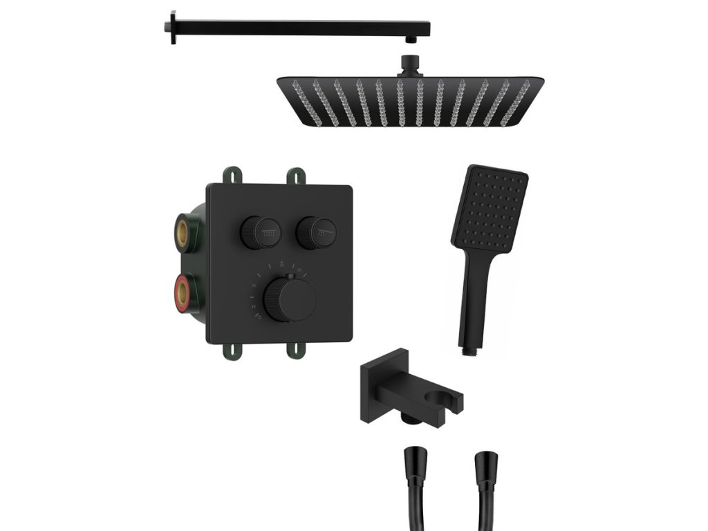 SMART SELECT podomítkový sprchový set s termostatickou baterií, 2 výstupy, vyústění, černá mat