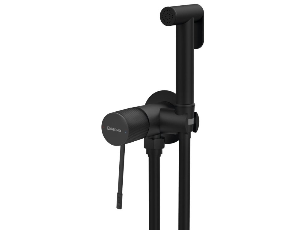 SOLARIS podomítková bidetová baterie se Stop sprškou, kulatá, černá mat