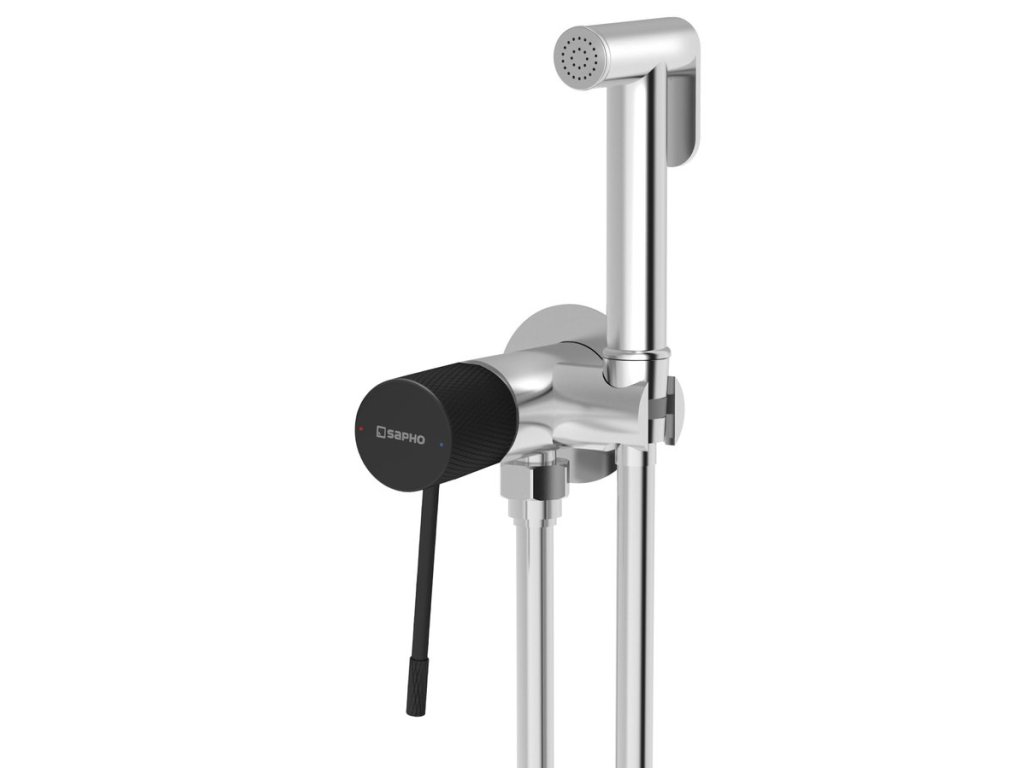 SOLARIS podomítková bidetová baterie se Stop sprškou, kulatá, chrom/černá mat