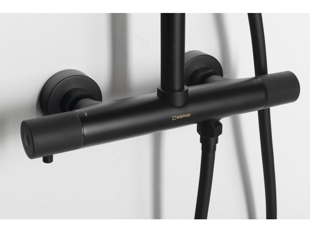 SOLARIS sprchový sloup s termostatickou baterií, černá mat