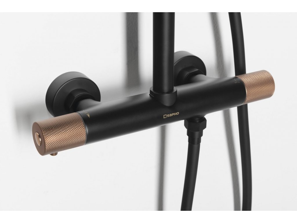SOLARIS sprchový sloup s termostatickou baterií, černá/měď mat