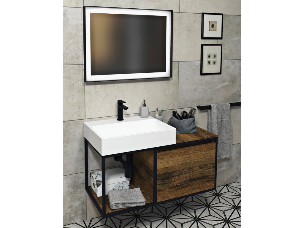 SORT zrcadlo s LED osvětlením 120x70cm; černá mat