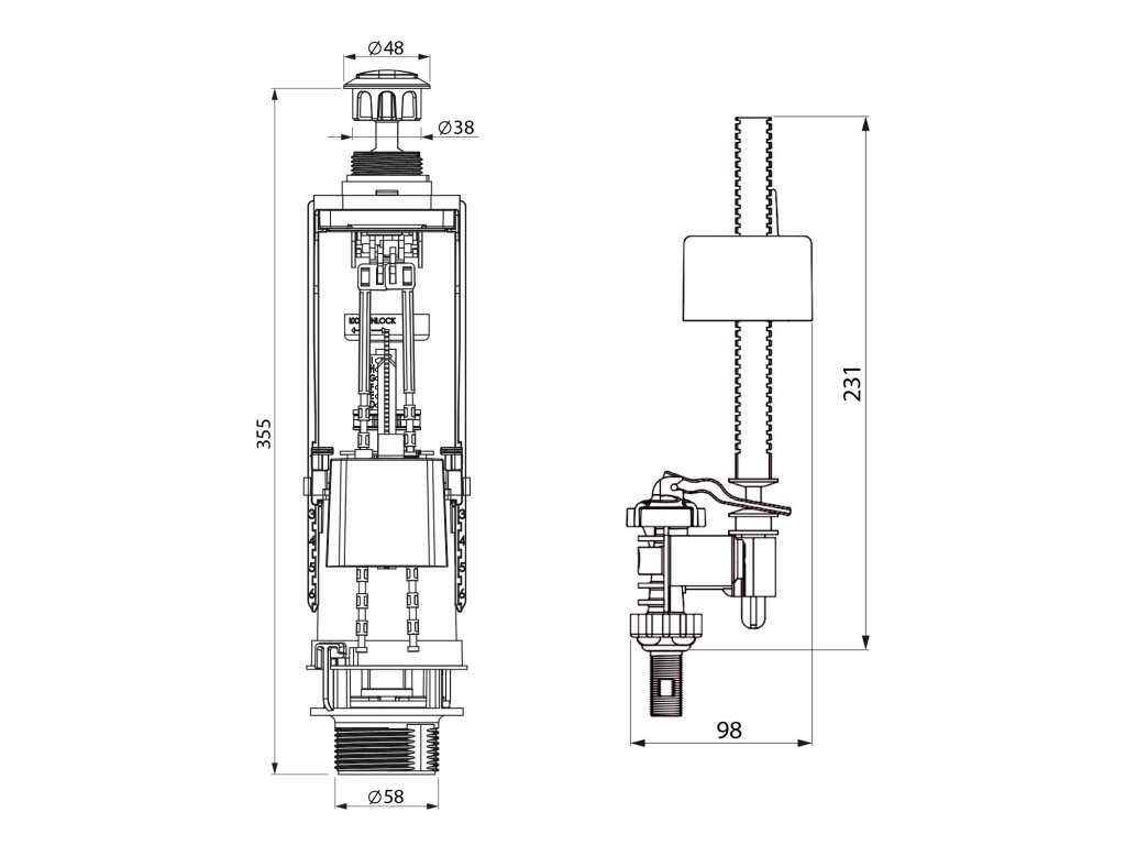 Splachovací souprava s DUAL tlačítkem, spodní napouštění 1/2", chrom