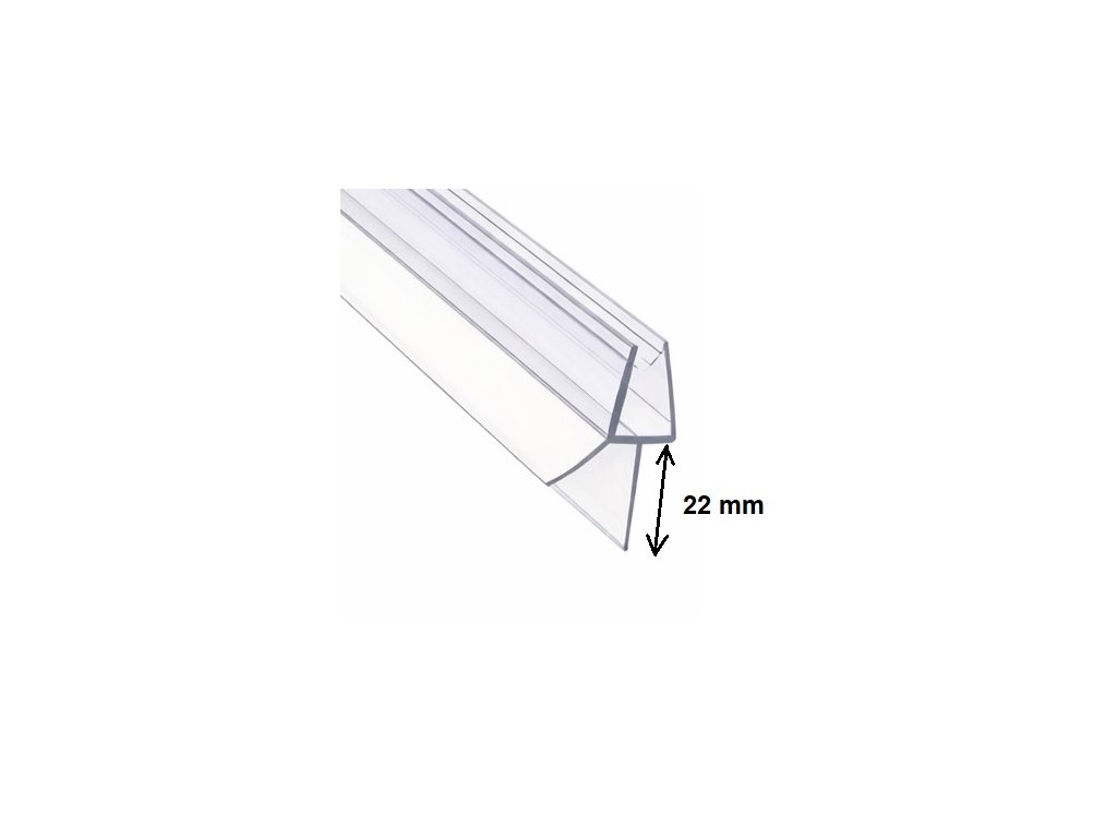 Spodní universální těsnění na sprchové dveře (okapnička); na sklo 4 - 6 mm; délka 1000 mm; výška břitu 22 mm(+/- 1 mm) - POZOR ATYPICKY VYSOKÝ BŘIT 22 mm