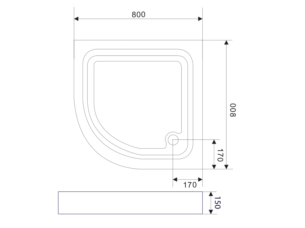 Sprchová samonosná vanička akrylátová, čtvrtkruh 80x80x15cm