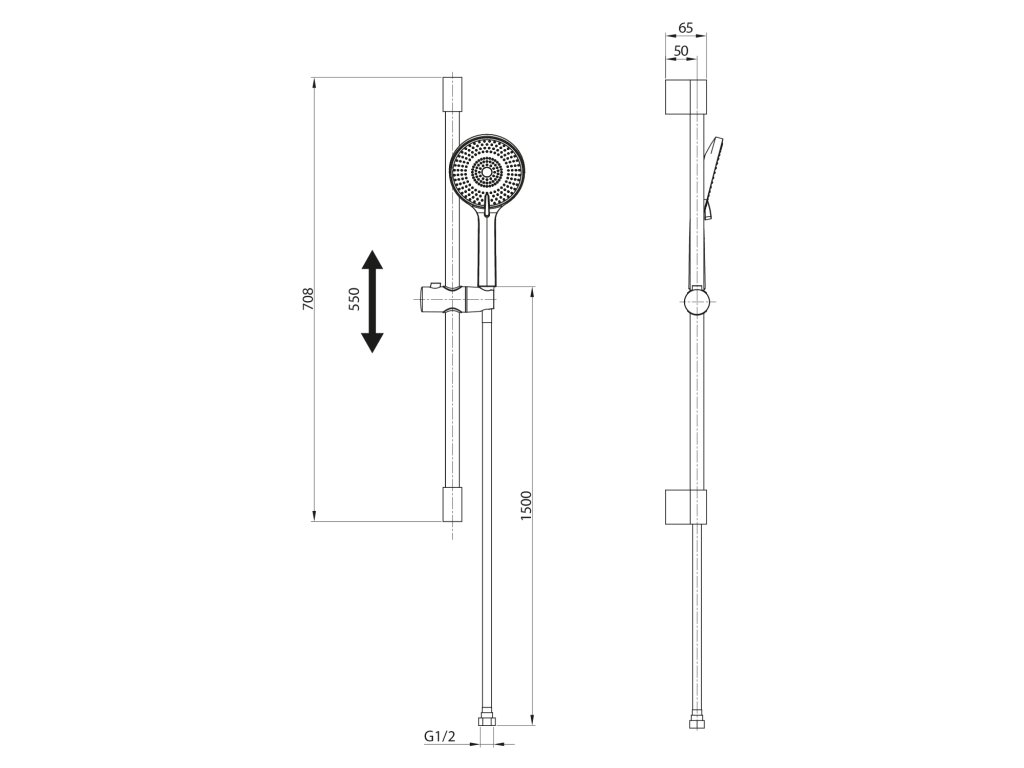 Sprchová souprava, posuvný držák 708mm, černá mat
