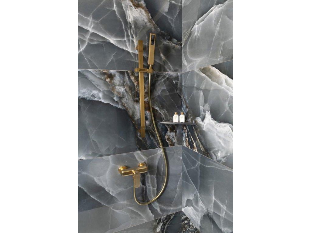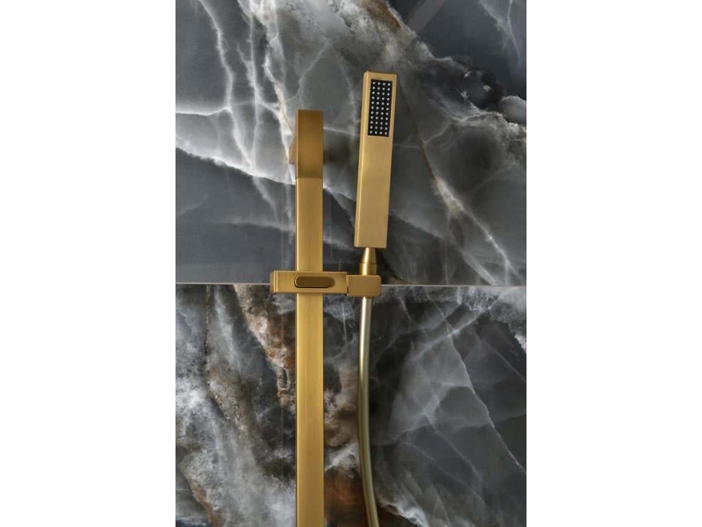 Sprchová tyč, posuvný držák, hranatá, 680mm, ABS/zlato mat