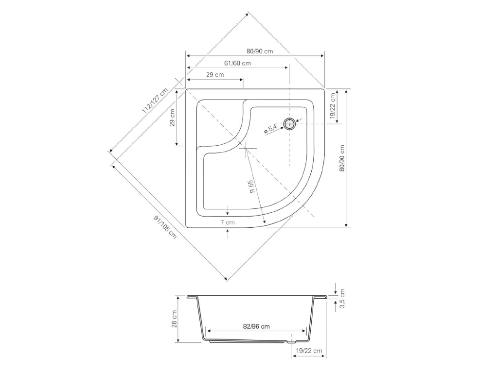 Sprchová vanička akrylátová, čtvrtkruh 80x80x28cm, včetně nožiček, R550