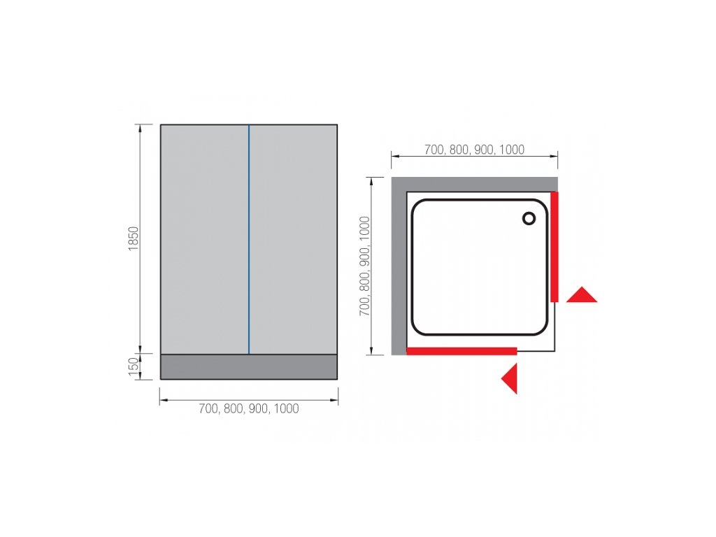 Variabilita sprchového koutu Skipper Angolo je 65 – 70 cm.