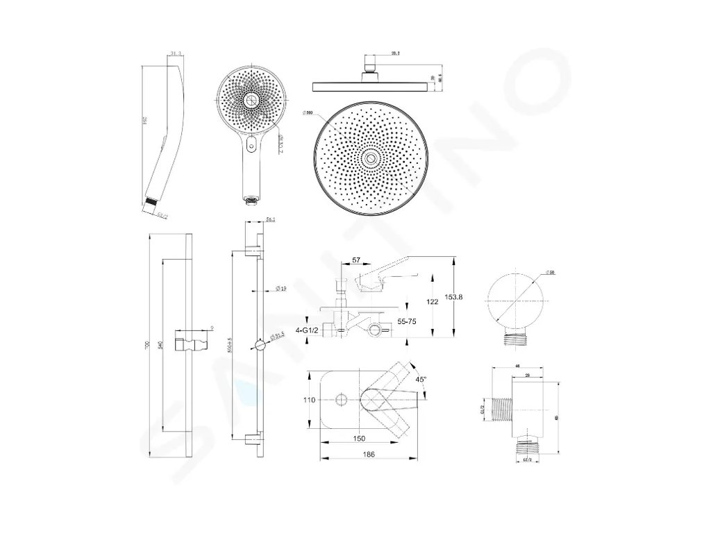 - průměr sprchy 260 mm