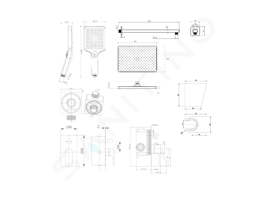 - rozměr sprchy 360 x 240 mm