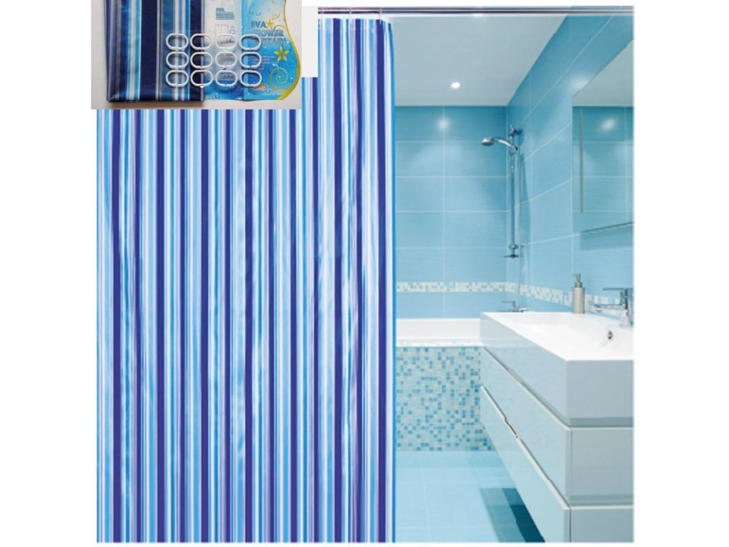 Sprchový závěs 180x180cm; vinyl; modrá; pruhy