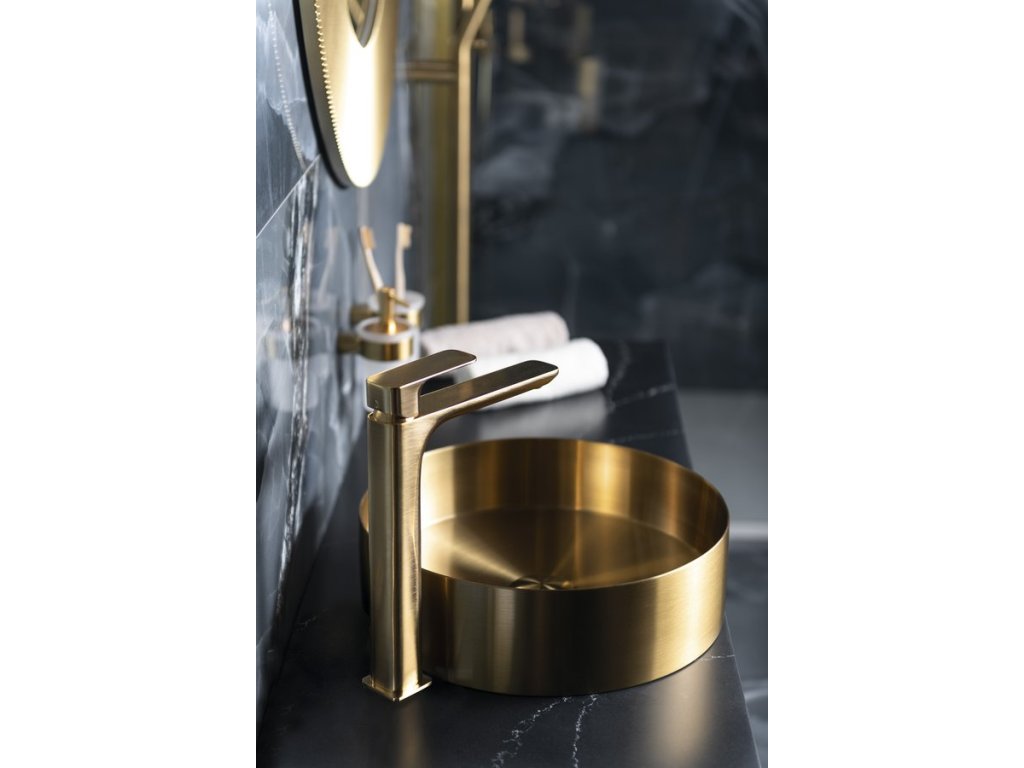 SPY stojánková umyvadlová baterie vysoká; prodloužená hubice; zlato mat