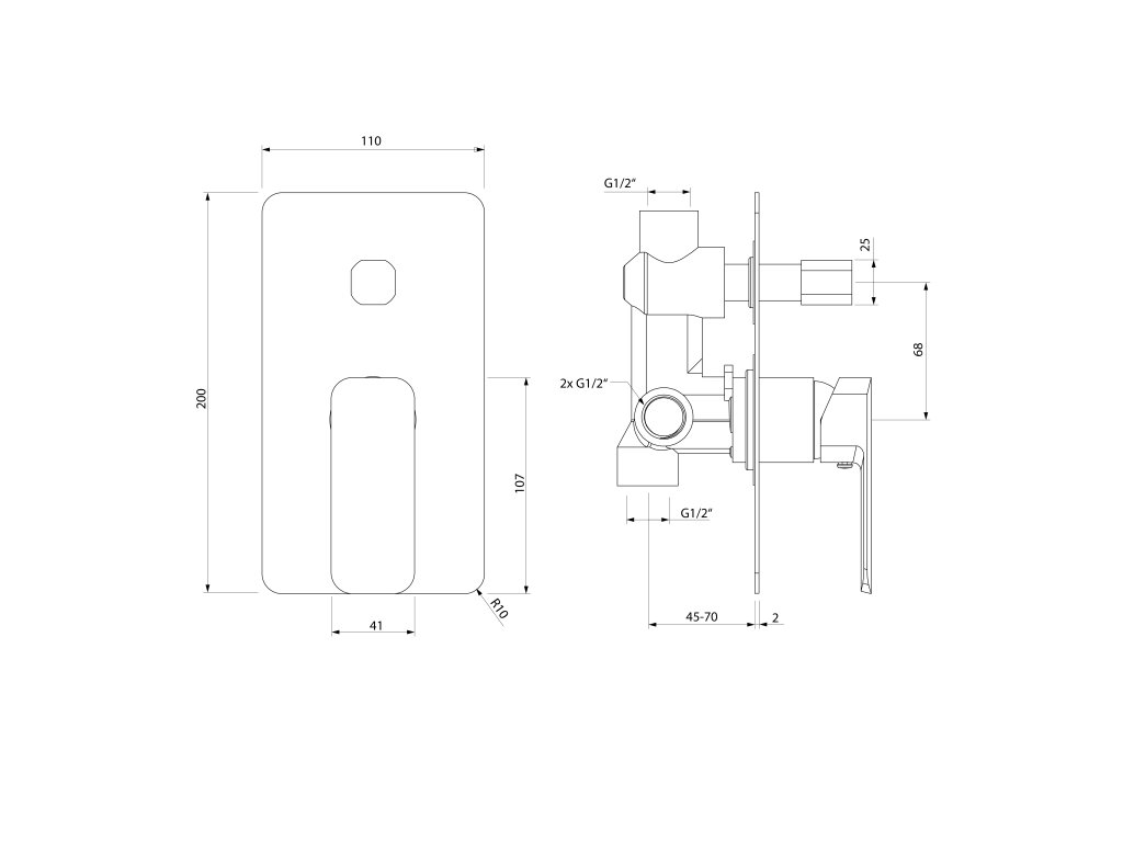 SPY podomítková sprchová baterie; 2 výstupy; otočný přepínač; chrom