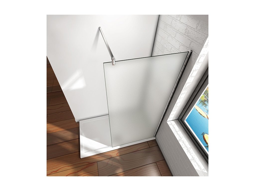 WALKY LINE MATT bezdveřové sprchové zástěny pro pohodlné sprchování ve volném prostoru odděleni jen 10mm matným sklem. Stabilitu zajišťuje kolmá vzpěra, nastavitelná v délkách 900mm a 1400mm.