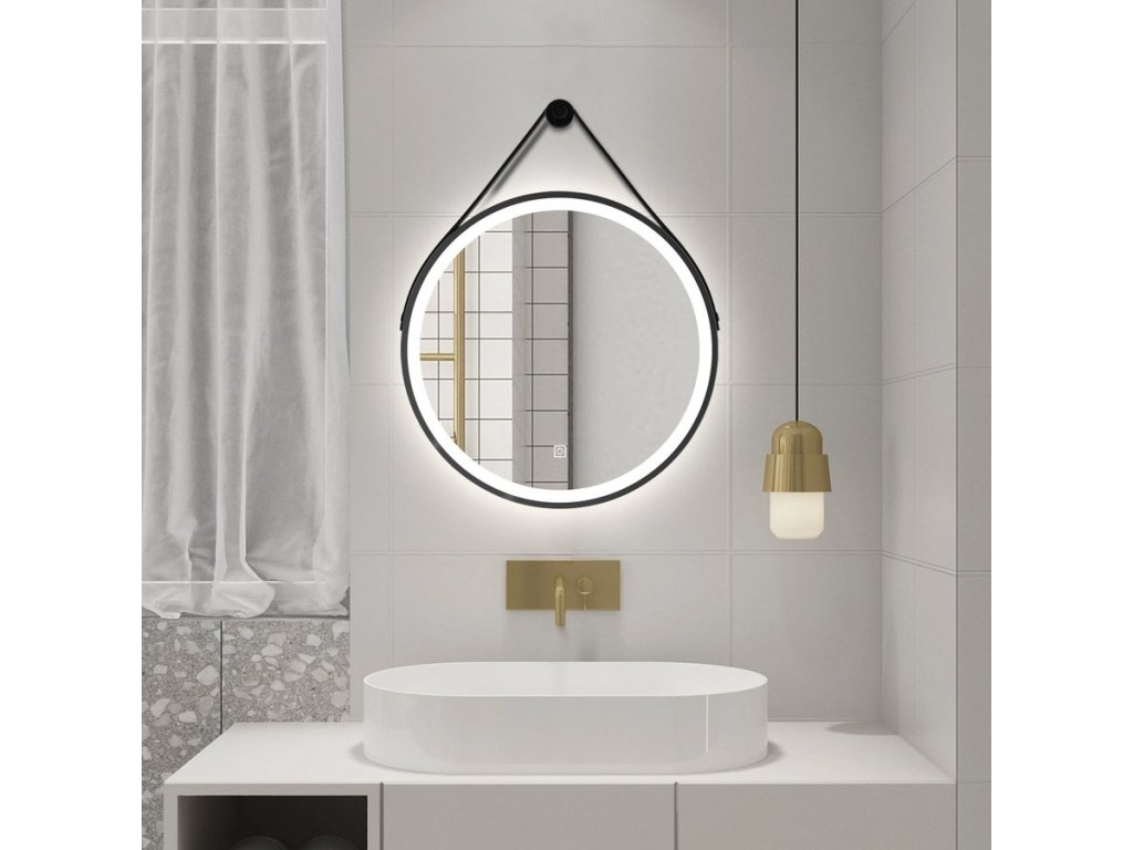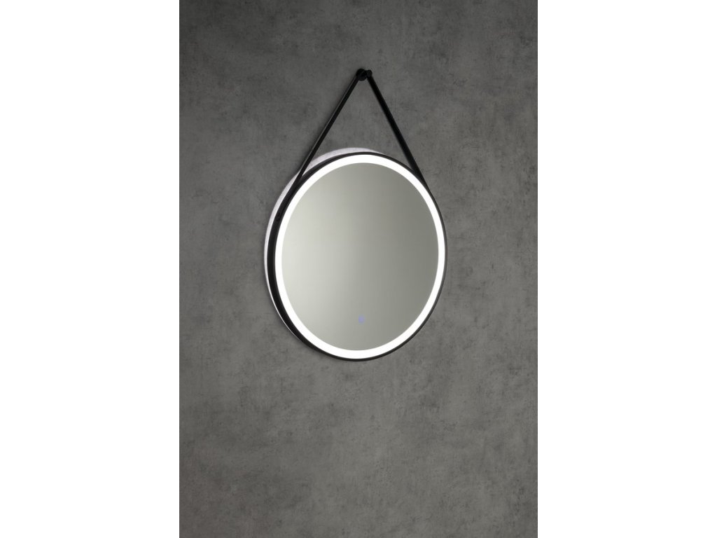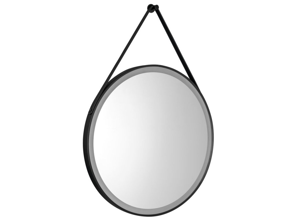 STAGO kulaté zrcadlo s LED osvětlením ø 60cm, kožený pásek, dotykový senzor, stmívatelné, černá mat