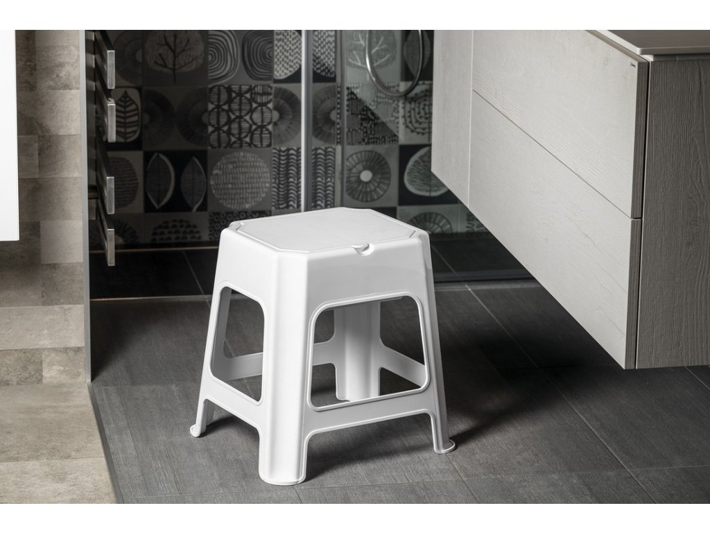 Koupelnová stolička s úložným prostorem, bílá
