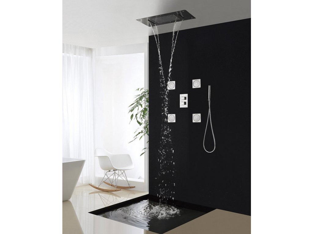 Stropní sprcha do podhledu se dvěma kaskádami, 700x380mm, nerez lesk
