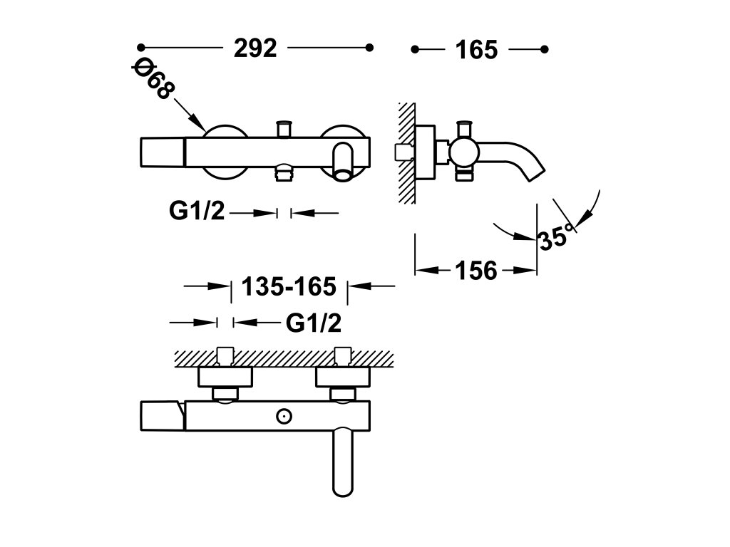 Vanová nástěnná baterieRozteč připojení: 150 mm