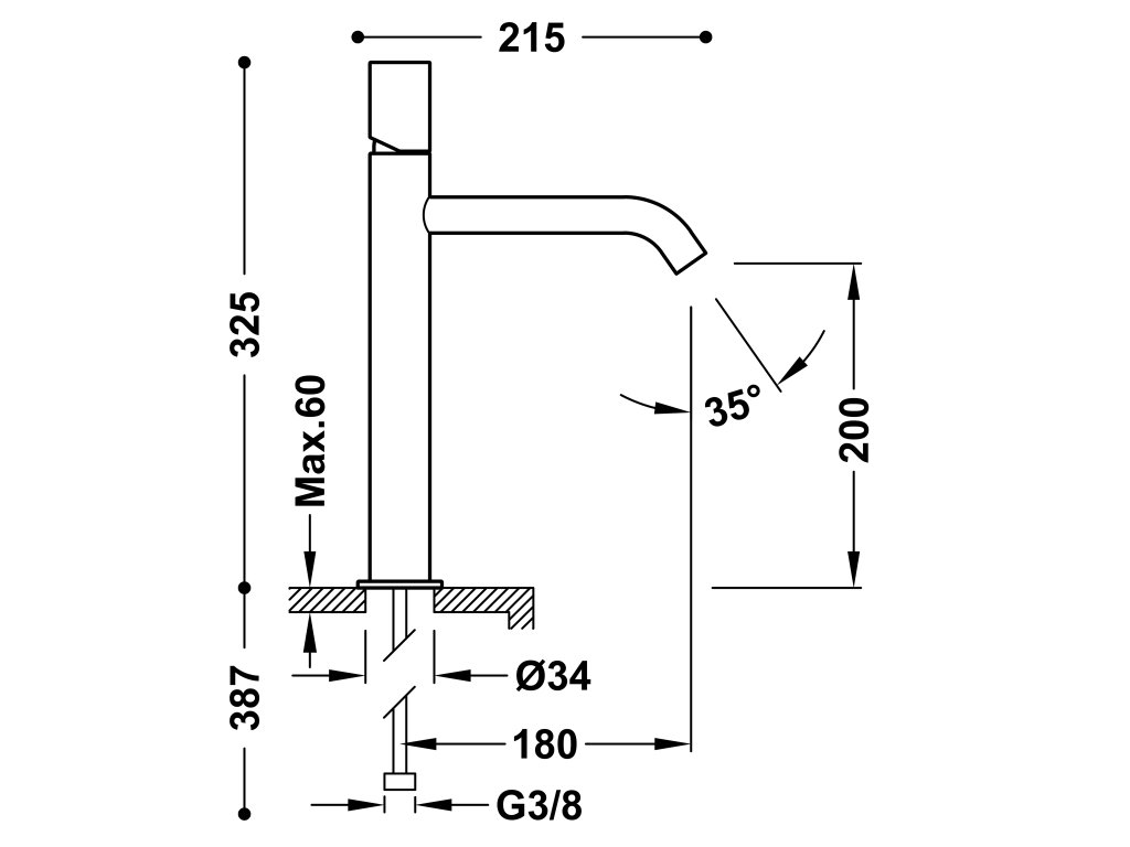 Umyvadlová stojánková baterie vysokáVýška: 325 mm