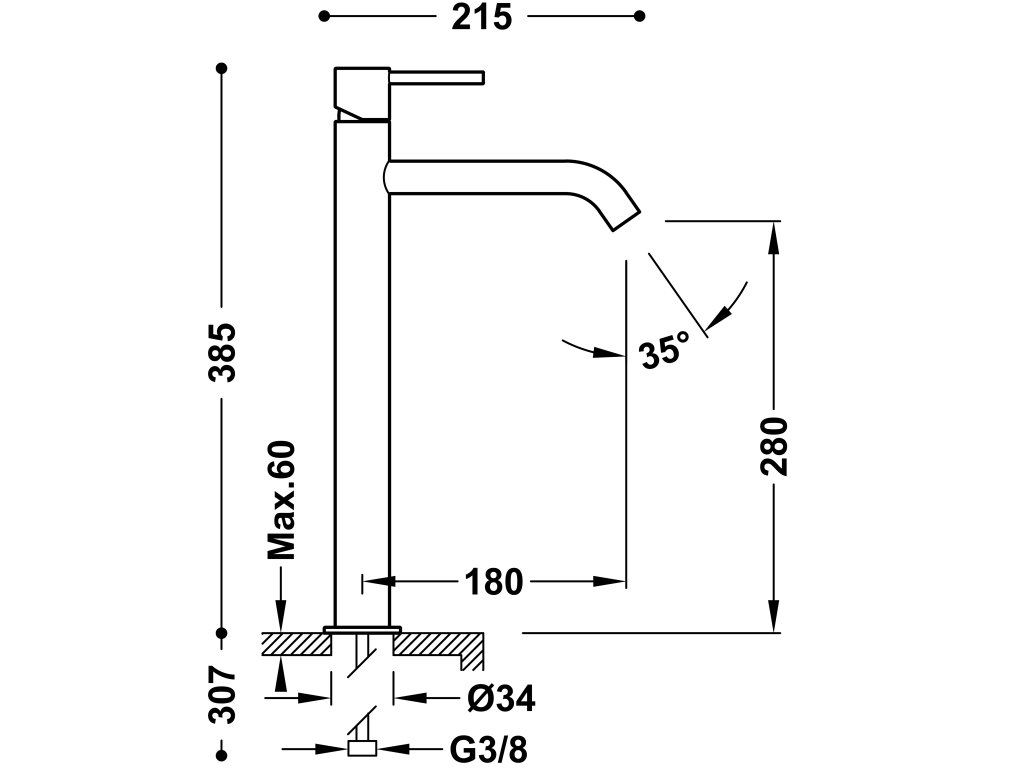 Umyvadlová stojánková baterie vysokáVýška: 385 mm