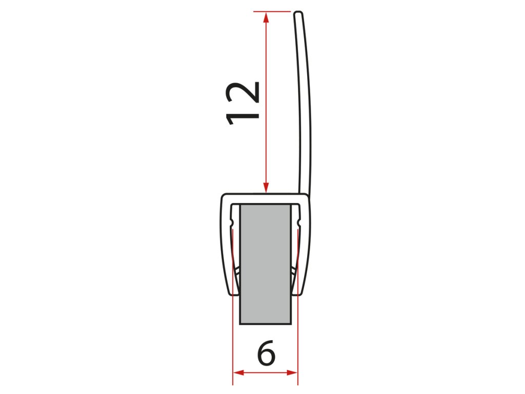 Svislé těsnění mezi skla 6mm, délka 2000mm