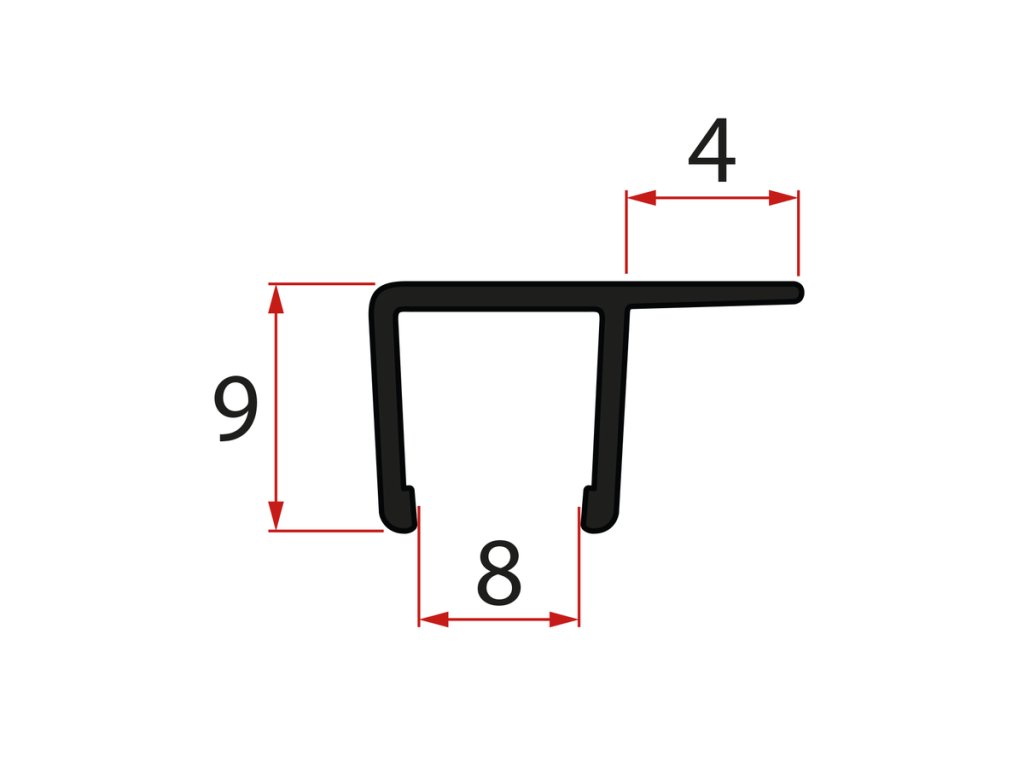 Svislé těsnění pro sklo 8mm, 2000mm, černá