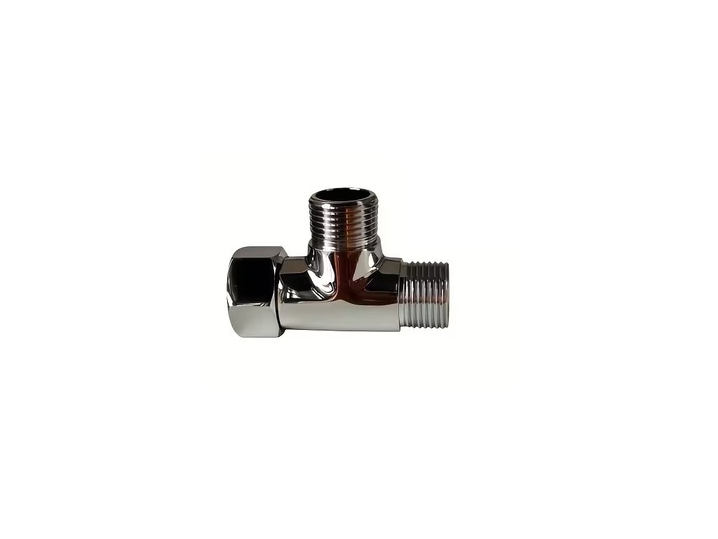 T-kus 3/8" s jednou otočnou maticí - T adaptér s maticí 3/8" x 3/8" x 3/8" povrch lesklý chrom