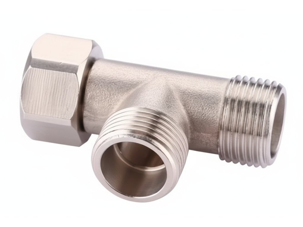 T-kus 3/8" s jednou otočnou maticí - T adaptér s maticí 3/8" x 3/8" x 3/8" povrch nikl