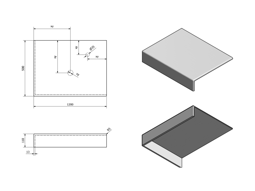 - Možnost dodání s otvory pro baterii a odpad dle výkresu (lze vrtat i v místě instalace)