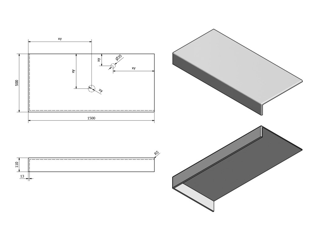 - Možnost dodání s otvory pro baterii a odpad dle výkresu (lze vrtat i v místě instalace)