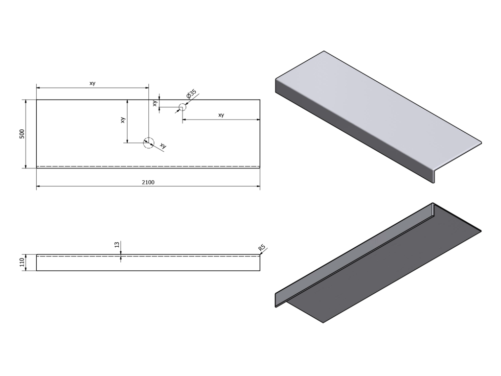 - Možnost dodání s otvory pro baterii a odpad dle výkresu (lze vrtat i v místě instalace)