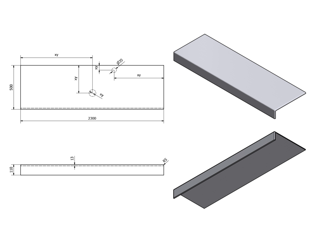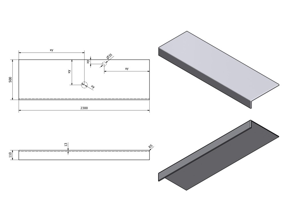 - Možnost dodání s otvory pro baterii a odpad dle výkresu (lze vrtat i v místě instalace)