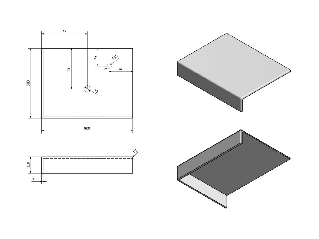- Možnost dodání s otvory pro baterii a odpad dle výkresu (lze vrtat i v místě instalace)