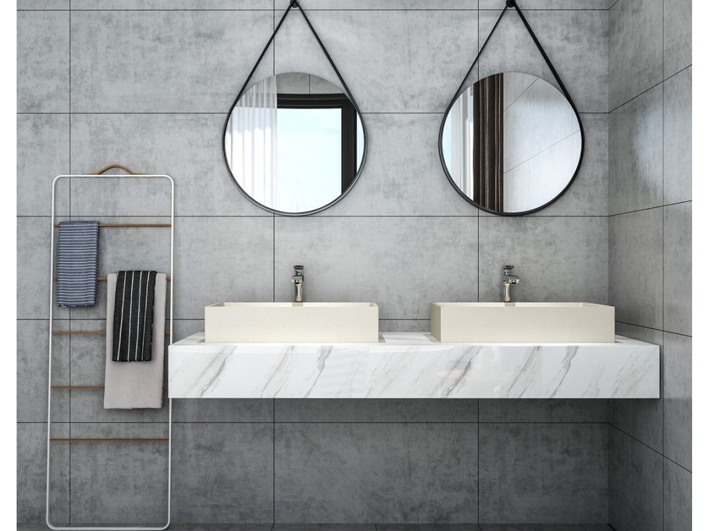 TARANT betonové umyvadlo včetně výpusti; 58x36cm; bílý pískovec
