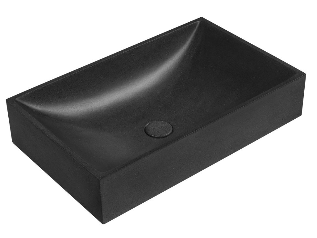TARANT betonové umyvadlo včetně výpusti; 58x36cm; černý granit