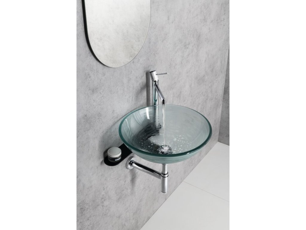 RIPPLE skleněné umyvadlo na desku Ø 42cm; čirá s motivem