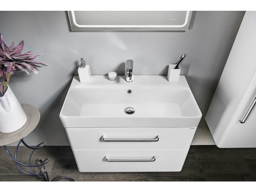 Moderní linie skříněk řady THEIA ladí s keramickými umyvadly THALIE vytváří spolu zajímavý celek. Skříňky a zásuvky jsou opatřeny elegantní úchytkou. Zásuvky jsou vybaveny značkovými pojezdy BLUM® s doživotní zárukou, dvířka jsou vybavena panty s tlumeným dovřením. Na výběr je zásuvkové nebo dvířkové provedení umyvadlových skříněk v lesklé bílé a ve vybraných dekorech lamina.