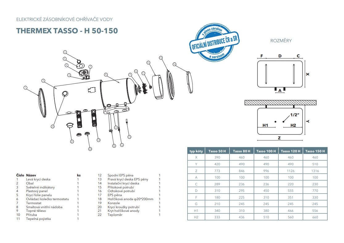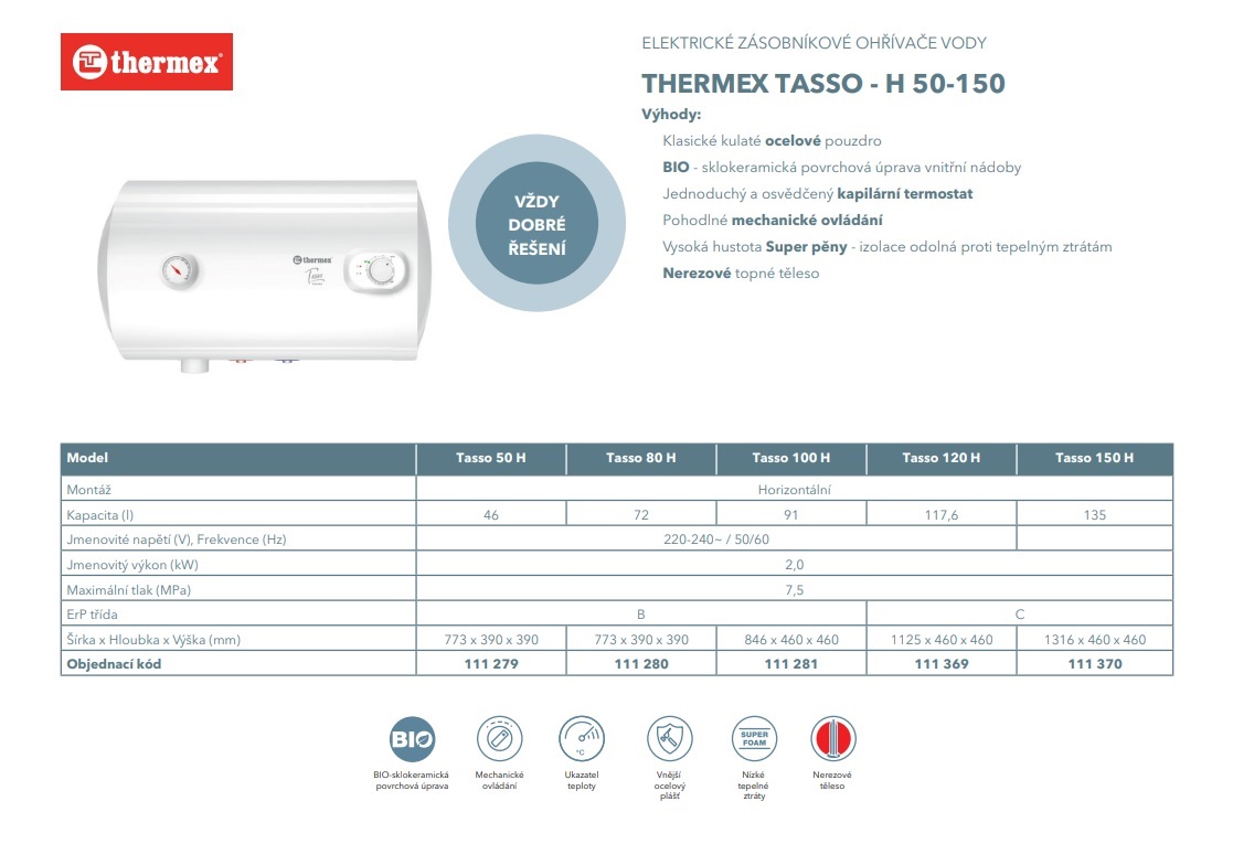 ELEKTRICKÉ ZÁSOBNÍKOVÉ OHŘÍVAČE VODY THERMEX TASSO HORIZONTÁLNÍ - LEŽATÉ