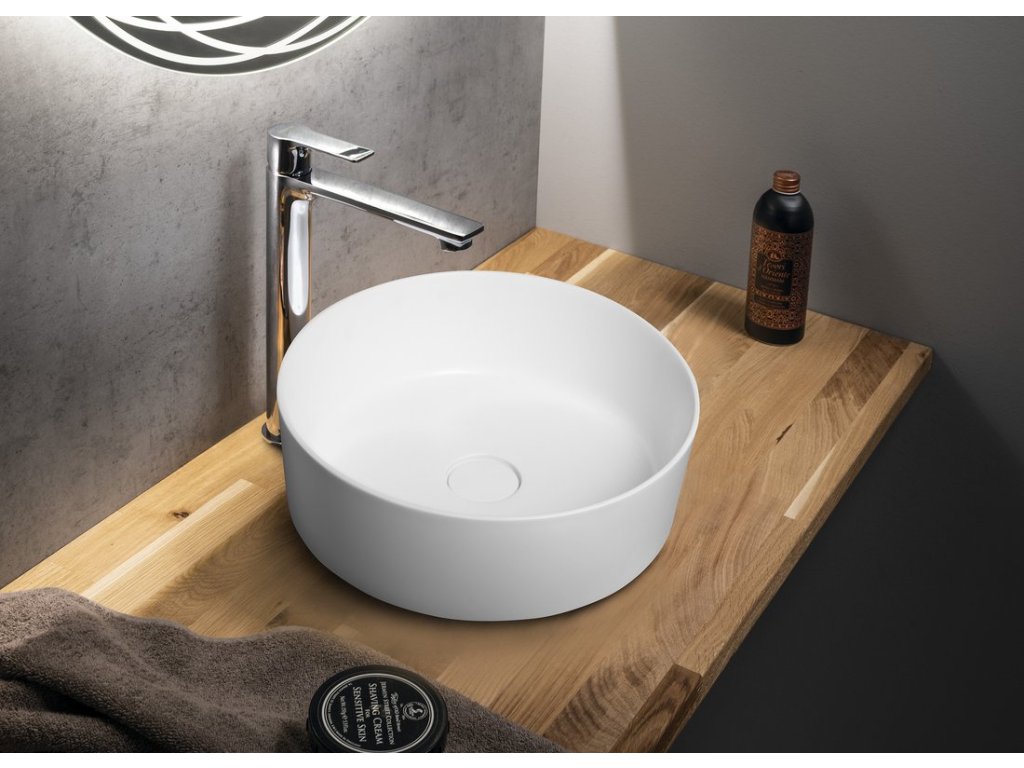 THIN umyvadlo na desku, Rockstone, Ø 38 cm, bílá mat
