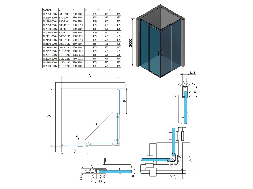 - Dveře jsou děleny na část posuvnou a pevnou - umožňují variabilní instalaci s levým nebo pravým otevíráním