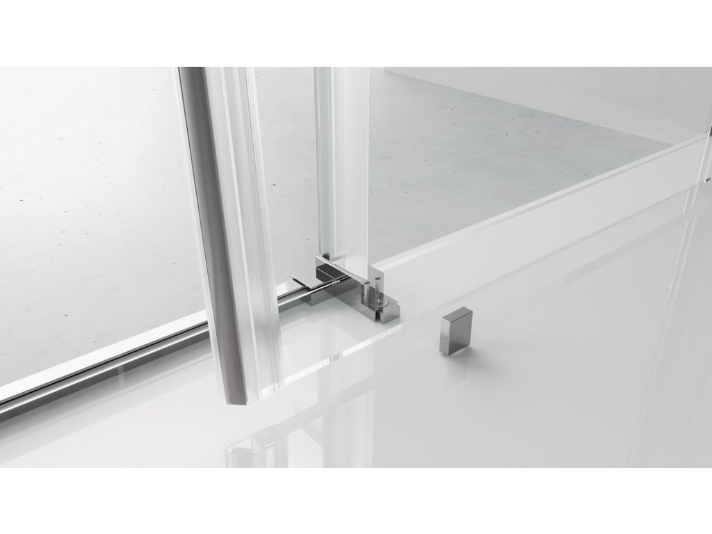 - Sklo dveří je volně zavěšené bez spodního vodícího profilu