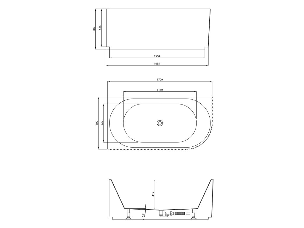 TIBERA STRIP L rohová stojící vana, 170x80cm, bílá