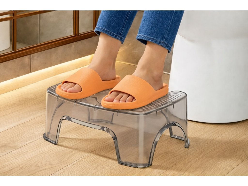 Toaletní stolička na wc Crystal II Smoke, záchodová stolička pro zdravější vyprazdňování, podstavec k toaletě - PODNOŽKA PŘI SEZENÍ NA TOALETĚ