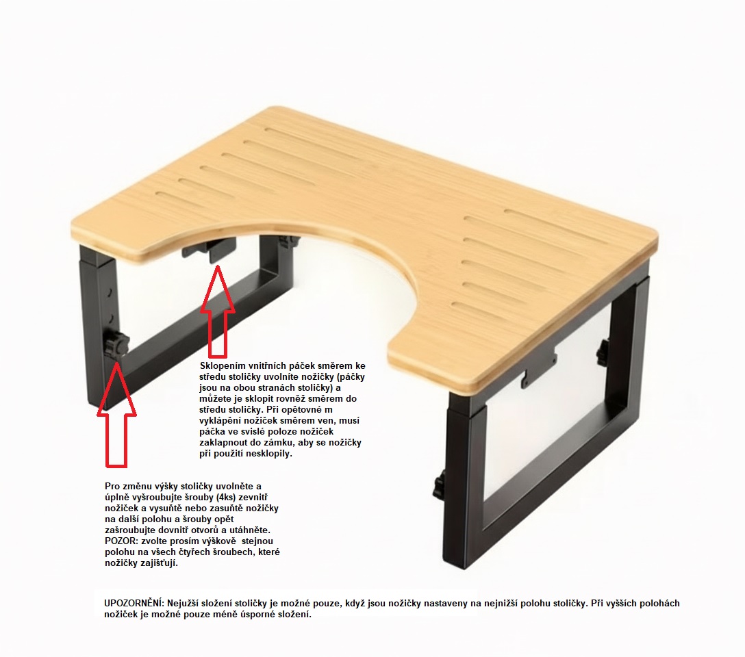 Stolička neslouží ke stání. Není určeno k přímému zatížení postavením se na stoličku. Pouze pro podložení nohou při sezení na toaletě.