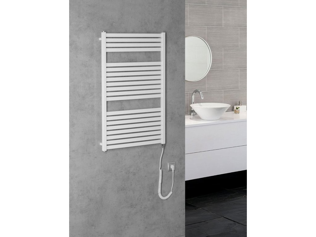 Elektrická otopná tělesa s čtyřhrannými trubkami. Elektrická topení jsou vhodná k umístění do koupelen, chodeb nebo WC. Jsou opatřena elektrickou topnou tyčí s kabelem a vidlicí do zásuvky.