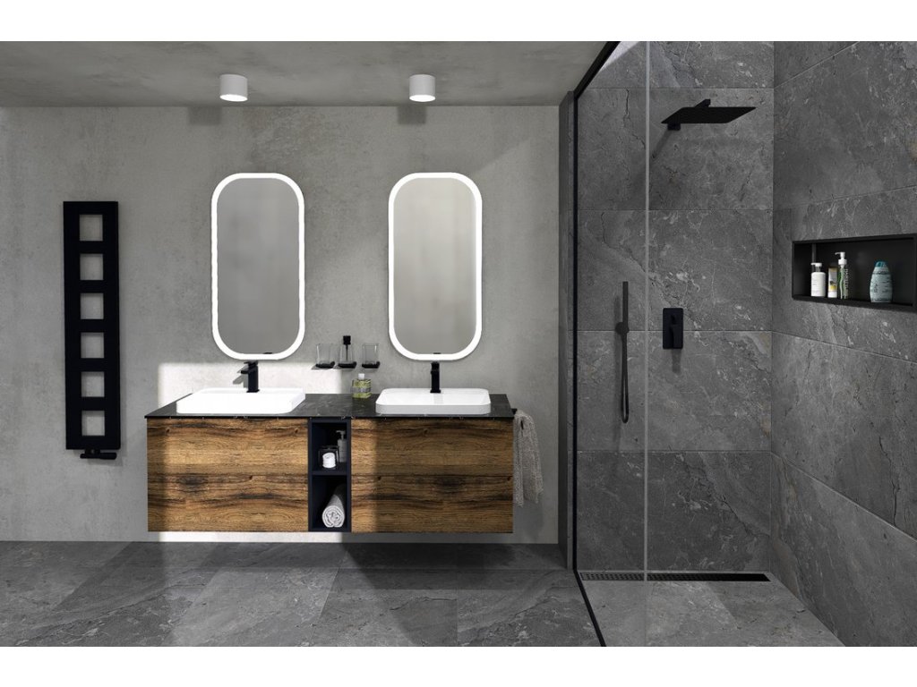 TREOS + TREOS zápustná umyvadla (Solid Surface); TREOS + deska a umyvadlo na desku