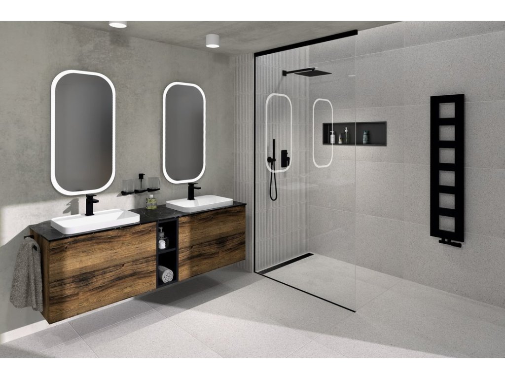 TREOS + TREOS zápustná umyvadla (Solid Surface); TREOS + deska a umyvadlo na desku