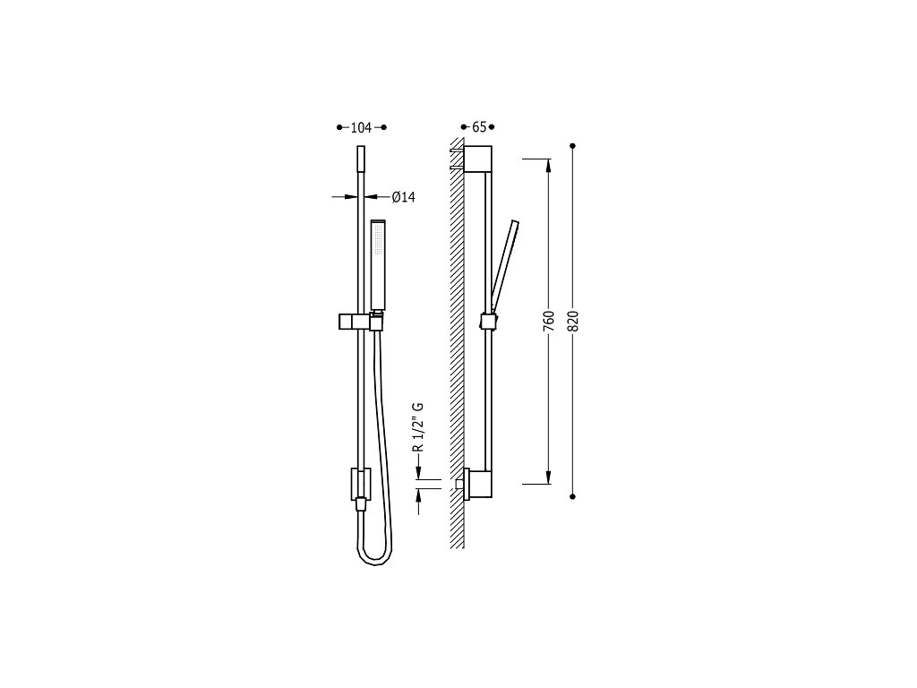 - Posuvná tyč s nástěnným přívodem vody