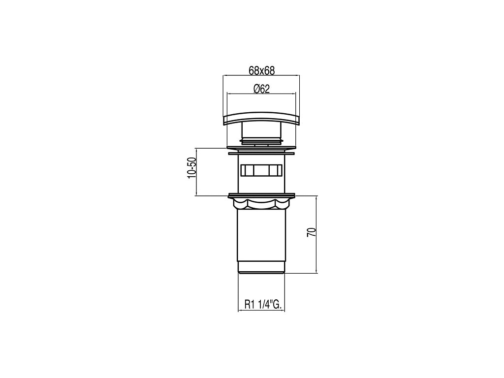 Umyvadlový ventil s přepademČtvercová zátka 68×68 mm CLICK-CLACK